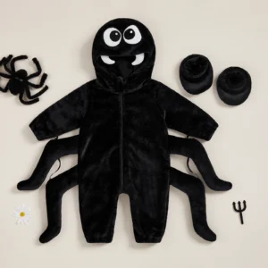 Monkey Baby Onesie with Crown – Plush Hooded Costume
