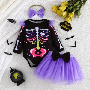 Baby Girl Halloween Skeleton Outfit with Tulle Skirt & Bow Headband