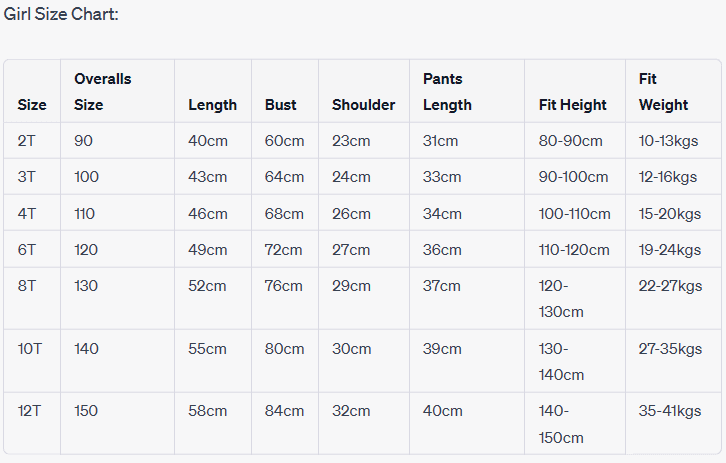 • Gender: Girls, Boys, Unisex
