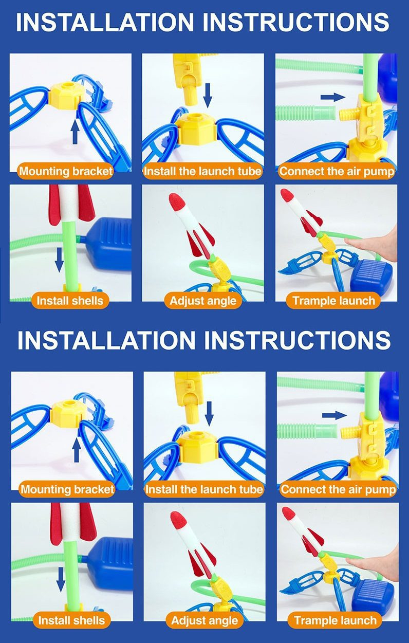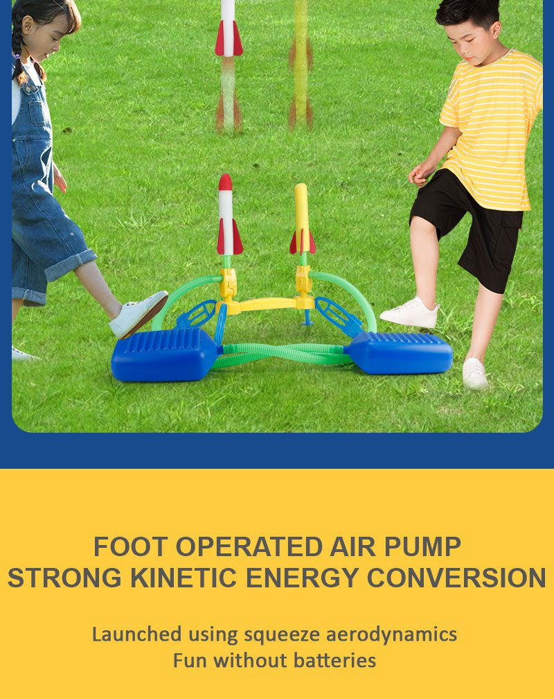 - 🚀 Learn Science Through Play: With the Exciting Foot Launcher Rocket Toy, kids not only have a blast but also engage their minds. They can learn about Science, Technology, Engineering, and Mathematics (STEM) concepts as they adjust angles, jump force, and flight trajectories, fostering their grasping and movement abilities.
