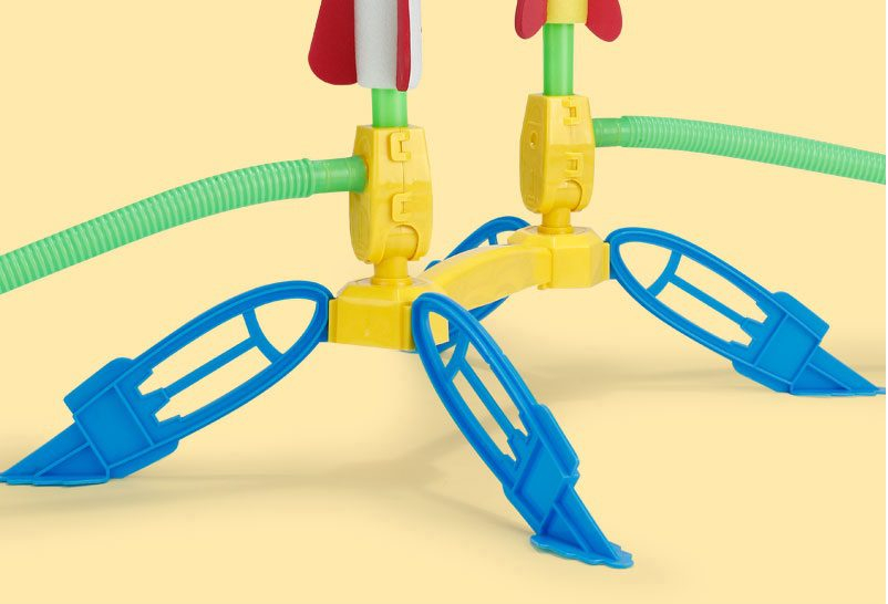 - Included Components: 1 Rocket Launcher, 5 Foam Rockets (2 colors), 1 Folding Yellow Stand