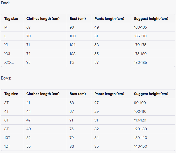 Create unforgettable memories with your loved ones in this fun and stylish family-matching set. Order yours today and take your family’s style to the next level!