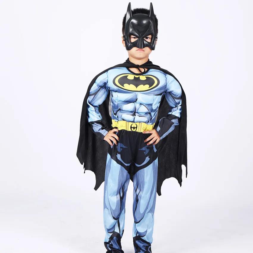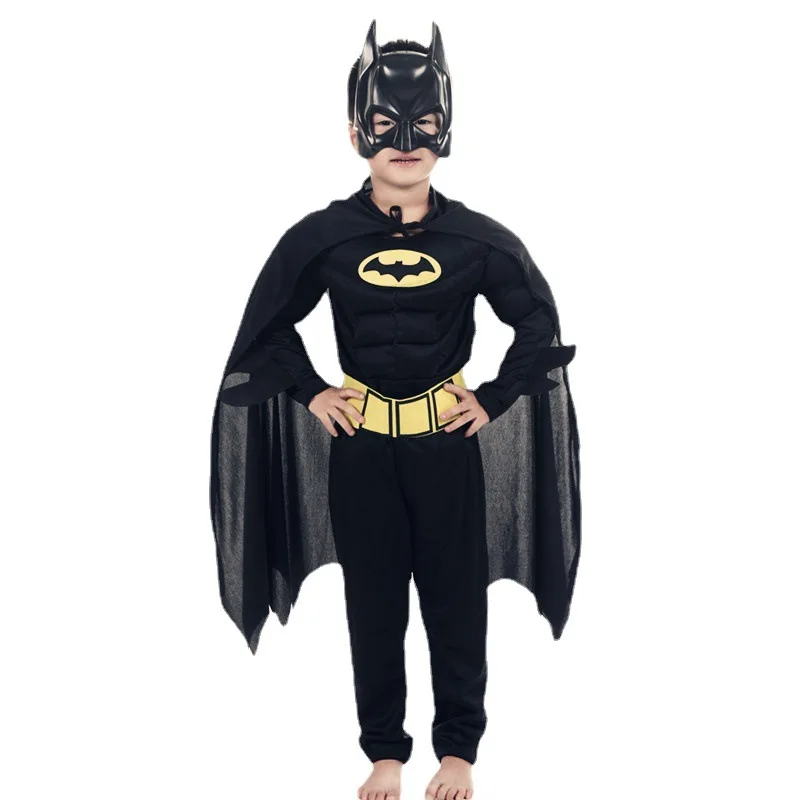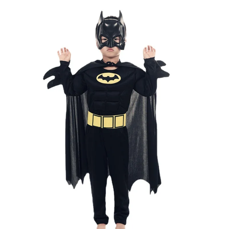 - Complete Batman look with jumpsuit, cape, and mask