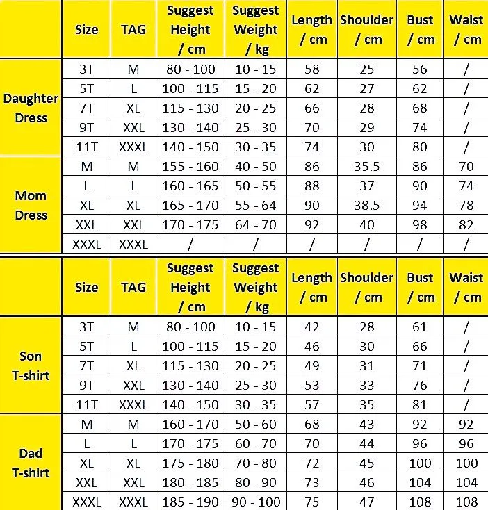• Combination Form: T-shirts for Dad and Son, Dress for Mom and Daughter
